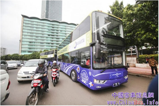 2014年初五輛嶄新的亞星雙層巴士抵達(dá)雅加達(dá)丹戎不碌(TANJUNG PRIOK)。作為印尼首都,雅加達(dá)旅游機(jī)構(gòu)歡迎五輛雙層觀光巴士的到來(lái),這種很有遠(yuǎn)見(jiàn)的做法成為在印尼的一道風(fēng)景線,也積極的推動(dòng)外國(guó)游客參觀城市數(shù)量的翻倍。