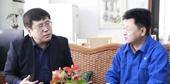 2014年春節(jié)前夕,玉林市委書記王凱慰問林志強(右)