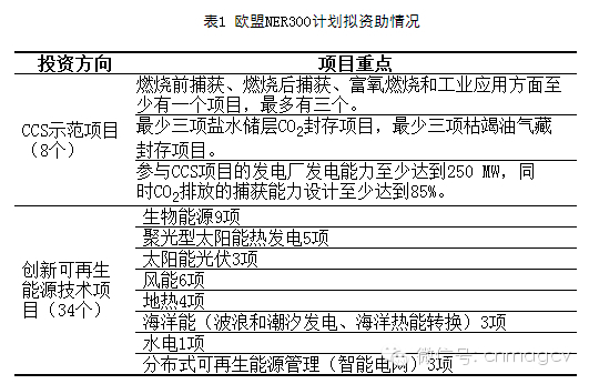 2010年11月9日,歐盟委員會發(fā)起世界上最大的低碳和可再生能源示范項(xiàng)目投資計(jì)劃的首輪招標(biāo)。這項(xiàng)被稱為“NER300”的計(jì)劃將為至少8個碳捕獲與封存(CCS)項(xiàng)目和至少34個創(chuàng)新可再生能源技術(shù)項(xiàng)目提供財政支持。這項(xiàng)計(jì)劃的目的是推動歐洲低碳經(jīng)濟(jì)發(fā)展,創(chuàng)造新的“綠色”工作崗位和促進(jìn)歐盟雄心勃勃的氣候變化目標(biāo)的實(shí)現(xiàn)。歐洲投資銀行(EIB)正在與該委員會合作執(zhí)行該計(jì)劃。