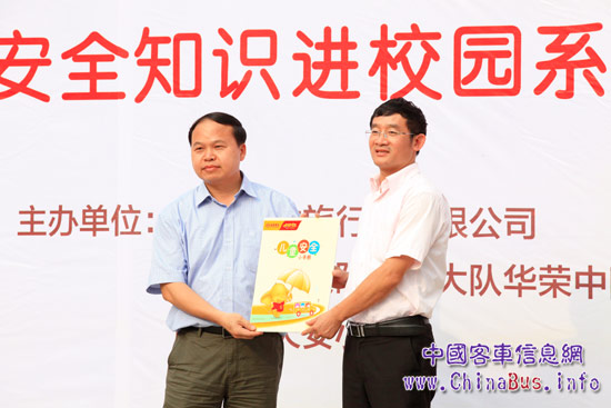 廈門金旅銷售公司總經(jīng)理賴志藝向天安小學(xué)捐贈《兒童安全手冊》