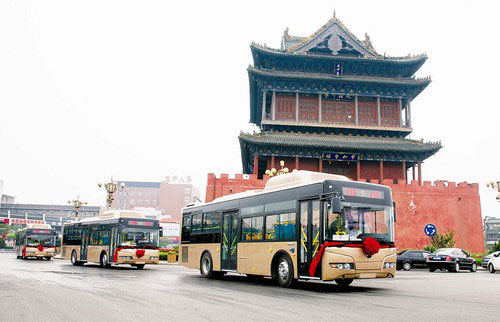 6月23日,臨汾市新購(gòu)回的新型清潔燃料空調(diào)公交車(chē)從鼓樓前駛過(guò)。該市購(gòu)置回85輛新型公交車(chē),確保城市公交與高鐵客運(yùn)站、城西客運(yùn)一級(jí)站、火車(chē)站及喬李民航機(jī)場(chǎng)的無(wú)縫銜接,方便又環(huán)保。