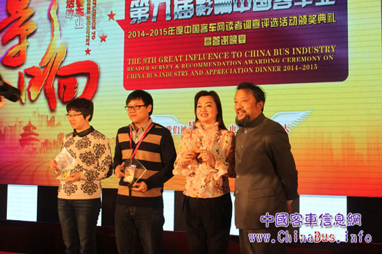 2015年1月9日,由中國客車網(wǎng)主辦的“第九屆影響中國客車業(yè)2014—2015年度中國客車網(wǎng)讀者調(diào)查評(píng)選結(jié)果公布暨頒獎(jiǎng)盛典”再次引行業(yè)矚目。“綠色公交系統(tǒng)解決方案提供商”——恒通客車憑借雄厚的公交客車專業(yè)研發(fā)實(shí)力和國際領(lǐng)先的新能源客車技術(shù),旗下都市領(lǐng)航快速充電純電動(dòng)客車(CKZ6812HBEV)、快速充電插電式氣/電混合動(dòng)力客車(CKZ6126HNHEV)分別以高票獲得影響中國客車業(yè)“2014年度客車行業(yè)零排放之星”、“2015年度新能源推薦車型”,12米紐曼后置系列車型榮獲“2015年度國內(nèi)市場(chǎng)推薦車型”和“2015年度海外市場(chǎng)推薦車型”等四項(xiàng)殊榮,為恒通客車2015年的發(fā)展拉開完美序曲。