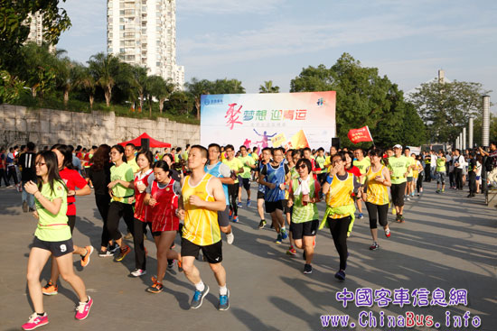 “今天,我們相聚在美麗的閩江公園進行一場充滿激情的樂活跑步,傳播綠色環(huán)保的正能量。也期望通過跑步這種輕松而富有魅力的運動形式,讓更多市民關(guān)注環(huán)保問題,走進陽光,走進自然,以健康環(huán)保的生活態(tài)度,享受多彩生活!遍_跑儀式上,廈門金龍旅行車有限公司的一名普通員工代表跑步者祝福青運,宣誓夢想。