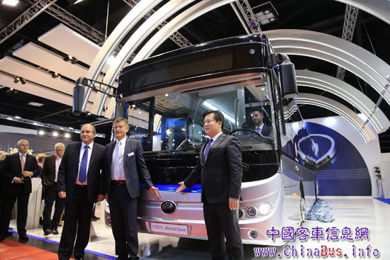 此次參展的中國宇通客車,作為世界大中型客車銷量第一的客車品牌,早在1999年就自主研發(fā)了第一款純電動客車,2005年研制完成了第一款混合動力客車,2008年又完成了低地板混合動力客車開發(fā)并示范運行服務(wù)于北京奧運會。