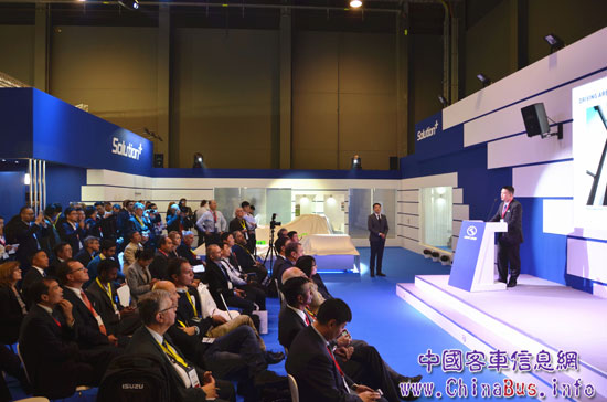 發(fā)布會現(xiàn)場,大金龍首先用一段視頻揭示了本年度的參展主題: “Solution+”。大金龍將在產(chǎn)品、服務(wù)、安全、節(jié)能等方面繼續(xù)發(fā)力,提供完美的客運系統(tǒng)解決方案。