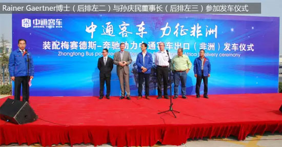 Rainer Gaertner博士表示,“中通客車是梅賽德斯-奔馳動(dòng)力總成業(yè)務(wù)的首個(gè)批量客戶,此次成功合作是雙方攜手共進(jìn)、實(shí)現(xiàn)共贏的良好開(kāi)端。在中國(guó)經(jīng)濟(jì)推進(jìn)更高水平的對(duì)外開(kāi)放,中國(guó)企業(yè)積極布局全球化的進(jìn)程中,我們希望,梅賽德斯-奔馳動(dòng)力也能成為中通客車這樣的國(guó)內(nèi)優(yōu)秀企業(yè)‘走出去’的動(dòng)力!