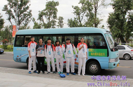 廈門田徑隊(duì)領(lǐng)隊(duì)為青運(yùn)會(huì)大金龍通勤車點(diǎn)贊
