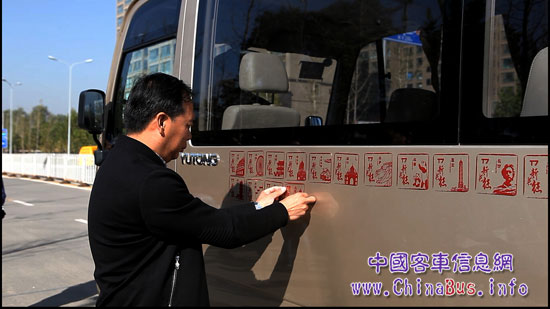 真正的好產(chǎn)品,需要靠數(shù)據(jù)來說話,需經(jīng)得起用戶的考驗。實車測試過程中,媒體和客戶代表借助專業(yè)測試儀器,并通過現(xiàn)場觀摩和實車體驗,親身感受和見證宇通T7的各項性能指標(biāo),增進了對宇通T7卓越品質(zhì)的了解與認(rèn)可;顒幼詈蟓h(huán)節(jié),山西省機關(guān)汽車服務(wù)中心劉科長作為客戶代表,將一張內(nèi)容極具山西文化特色的車貼認(rèn)真粘貼在T7車身,為T7的卓越品質(zhì)進行見證。
