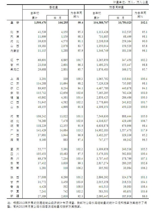 2015年10月公路旅客運(yùn)輸量