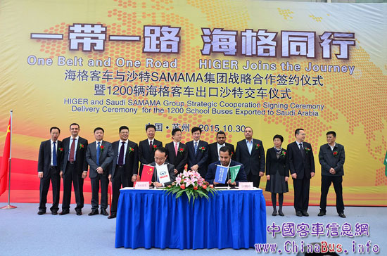 10月30日上午,“一帶一路、海格同行”——海格客車與沙特客戶戰(zhàn)略協(xié)議簽署暨1200輛校車交車儀式在蘇州工業(yè)園區(qū)海格客車生產基地隆重舉行。