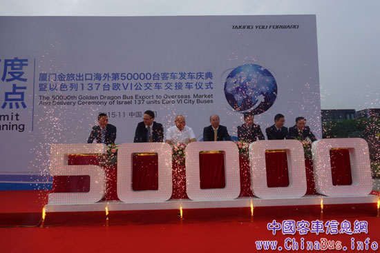 廈門金旅第50000輛客車出口海外發(fā)車慶典暨以色列137輛歐VI公交車交接車儀式