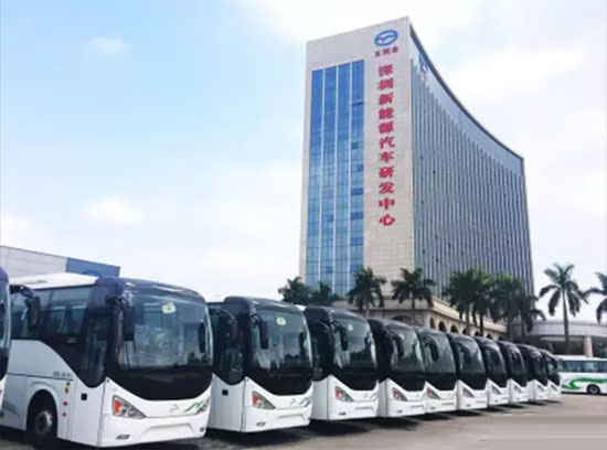整裝待發(fā)的五洲龍新能源客車