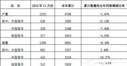 安徽安凱汽車股份有限公司截至2015年11月份產(chǎn)銷快報(bào)數(shù)據(jù)如下:(單位:輛)