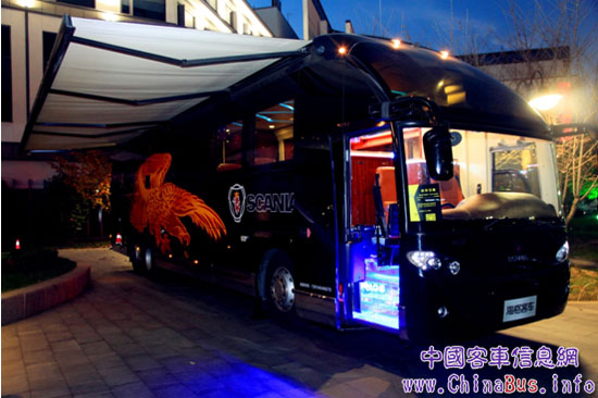 豪車,高端晚會的必備元素!昂诳ㄖ埂痹跄苋鄙?價值1000萬元的斯堪尼亞海格豪華房車靜靜地候在“黑卡之夜”的門外,為活動平添尊貴。
