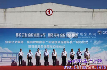 2014年8月26日,北京公交集團(tuán)•福田歐輝客車"車輛技術(shù)保障平臺(tái)"啟動(dòng)儀式暨首批服務(wù)保障車交車儀式在北京舉行,活動(dòng)以"聯(lián)動(dòng)新模式 服務(wù)新保障"為主題,來自北京公交集團(tuán)、福田汽車集團(tuán)的領(lǐng)導(dǎo),行業(yè)專家、媒體等約150人參加。