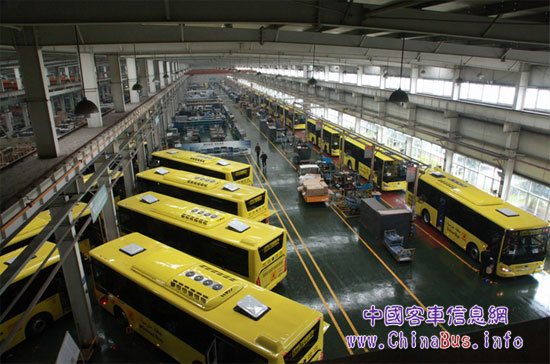 在車間加緊生產(chǎn)的沙特校車