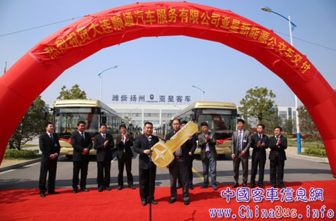 近日,亞星JS6108GHEVC批量交付大連的交車(chē)儀式在揚(yáng)州亞星客車(chē)股份有限公司隆重舉行。