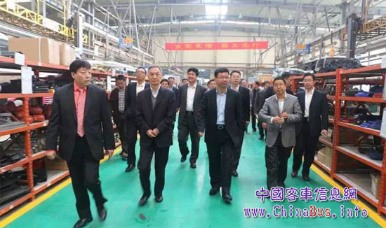 華市市長(zhǎng)暨軍民(中)陪同中興公司董事長(zhǎng)侯為貴(左二)考察青年汽車