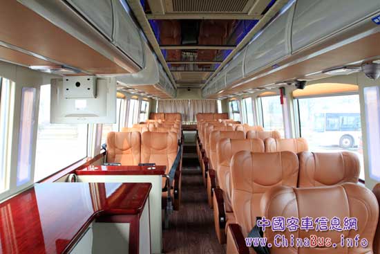 如此明顯的節(jié)油效果,將給運(yùn)營(yíng)企業(yè)帶來(lái)更多經(jīng)濟(jì)效益,成為的真正贏運(yùn)利器。當(dāng)然除了節(jié)油以外,此車(chē)型的舒適性和操縱性也是可圈可點(diǎn)。車(chē)載WIFI系統(tǒng)、獨(dú)立液晶彩屏、獨(dú)立220V電源、豪華商務(wù)座椅、豪華柜式飲水機(jī)、冰箱、前后雙19寸電動(dòng)折疊液晶彩屏、CSS定速巡航等一系列配置讓客運(yùn)班車(chē)可以與高鐵商務(wù)艙和一等座相媲美。該車(chē)型最大的亮點(diǎn)是前排8座采用航空商務(wù)豪華座椅,后排30座采用商務(wù)座椅,實(shí)現(xiàn)了1+1的功能,旨在滿足旅客多樣化的尋求,為競(jìng)爭(zhēng)增加籌碼。高檔真皮氣囊減震式駕駛座椅、加裝獨(dú)立小型壁掛式散熱器、司機(jī)暖手、暖腳吹風(fēng)系統(tǒng)的增加以及較小的轉(zhuǎn)彎半徑設(shè)計(jì)給司機(jī)更多關(guān)懷和溫暖。