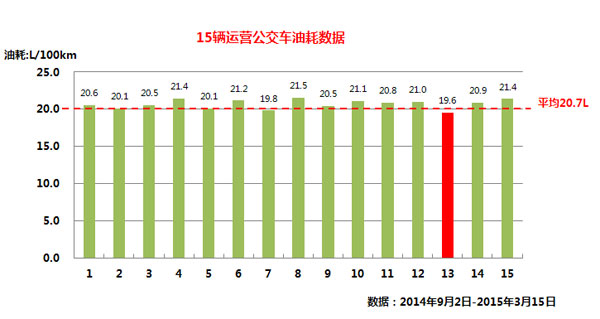 據(jù)了解,松正4代插電式混合動(dòng)力系統(tǒng)不僅僅在“抗霾”方面有著出色的表現(xiàn),其節(jié)能效果也是首屈一指。為證實(shí)這一點(diǎn),記者對(duì)鹽城公交的實(shí)際運(yùn)營(yíng)情況進(jìn)行了調(diào)查。2014年,鹽城市投入使用了40臺(tái)搭載松正4代產(chǎn)品的插電式混合動(dòng)力公交車,根據(jù)15輛裝有數(shù)據(jù)記錄儀的公交油耗顯示:2014年9月到目前為止,這批公交車的平均油耗僅為20.7L/100km,其中,一輛蘇J13271牌公交車跑出了19.6L/100km的最低平均油耗,同時(shí),這輛車也創(chuàng)出了18.46L/100km的最低單月油耗,創(chuàng)造了鹽城12m客車的最低油耗記錄。