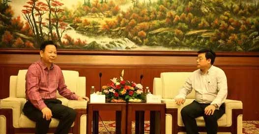 五洲龍汽車集團董事長張景新與長沙順達新材公司董事長劉柏順博士熱烈交談