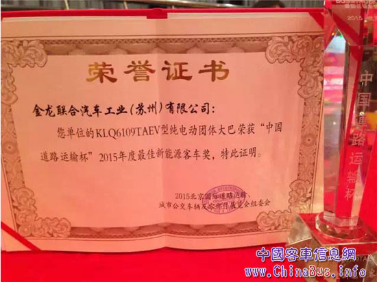 2015道路運輸展,海格KLQ6109TAEV純電動大巴一經(jīng)展出,便廣受關(guān)注,最終高票當選最佳新能源客車大獎,獲行業(yè)認可。