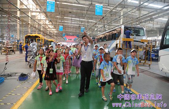 看到了“大鼻子“校車的生產(chǎn)流程,體驗(yàn)了“水簾洞”帶來的刺激。7月27日上午,第八期“相約夢想快樂成長”宇通愛心夏令營開營,來自新疆維吾爾自治區(qū)哈密市的少數(shù)民族優(yōu)秀學(xué)生代表穿著民族服裝和河南省內(nèi)貧困山區(qū)及打工子弟學(xué)校品學(xué)兼優(yōu)的學(xué)子,共同參觀了鄭州宇通工業(yè)園。