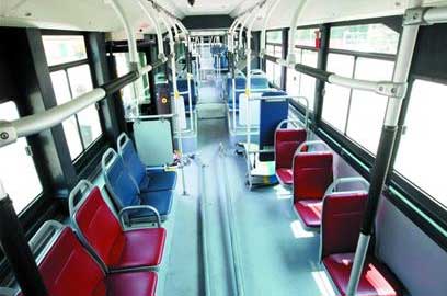 新車因為車身較長,車上設(shè)有4個車門,方便乘客下車!靶萝嚽伴T上車,二、三門下車,第四門為逃生門,且車門設(shè)有無障礙踏板,方便特殊乘客上下車!惫皇斜惫窘(jīng)理管恩軍介紹說,新車車內(nèi)設(shè)計及座椅與現(xiàn)有公交車大致相同,設(shè)有36個座位,載客量為167人。但新車最后一排只有三個座位,中間有金屬制的梯子通向車頂,便于車輛檢修,而目前的公交車最后一排則全為車座。最為引人注意的是,這輛車全是皮質(zhì)座椅,提高了乘車的舒適性。此外,駕駛室配上了玻璃門,將駕駛員和其他乘客隔絕開來。管恩軍說,這一人性化的設(shè)計,既能讓駕駛員安心開車,保證行車安全,也能杜絕個別乘客的過激行為。