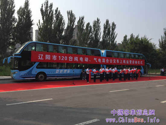 8月17日上午,遼寧省遼陽市在河東新城舉行120臺宇通節(jié)能與新能源公交車上線運營啟動儀式,吸引眾多市民關注。遼陽市人大、市政府、市政協(xié)等班子有關領導,以及遼寧省運管局、遼陽市交通局、市運管處和遼陽市公共汽車公司的相關領導出席活動現場。包含90臺新能源公交和30臺天然氣公交的120臺宇通客車即日起投入遼陽市,而其中的90臺新能源公交在儀式上格外引人注目。