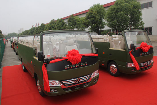 能與老兵方隊(duì)一同受閱,安凱客車倍受鼓舞。在接到受閱車輛制造的任務(wù)后,安凱客車成立公司級(jí)項(xiàng)目領(lǐng)導(dǎo)小組,下設(shè)技術(shù)、工藝、質(zhì)保、生產(chǎn)、服務(wù)等各個(gè)工作組,克服了時(shí)間緊、任務(wù)重、要求高等一系列困難。5月28日,40輛敞篷寶斯通順利通過各項(xiàng)嚴(yán)格檢驗(yàn),正式交付使用。