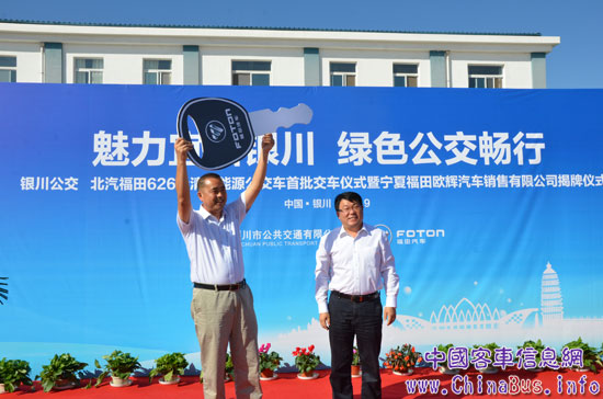 9月6日,福田歐輝626輛清潔能源公交車交付銀川公交交車儀式在寧夏自治區(qū)銀川公交場(chǎng)站內(nèi)舉行,第一批388輛歐輝清潔能源公交車已交付完畢,部分已投入運(yùn)營(yíng)。剩余200余輛公交車將在中阿博覽會(huì)之前全部到位。交車儀式上,銀川市交通局、銀川公交公司等領(lǐng)導(dǎo),福田汽車集團(tuán)副總裁、歐輝客車事業(yè)部黨委書記、總經(jīng)理范現(xiàn)軍出席并致辭。