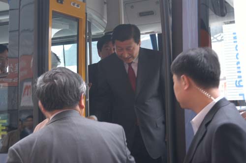 日前,中共上海市委書記習(xí)近平在參觀上海國(guó)際車展時(shí),試乘海格氫燃料城市客車。從上海新國(guó)際博覽中心E2館門前廣場(chǎng)到W1館廣場(chǎng),不長(zhǎng)的路程,習(xí)書記一行進(jìn)行了近10分鐘的試乘。在平穩(wěn)行駛的海格氫燃料客車上,習(xí)書記問得仔細(xì),聽得認(rèn)真,他饒有興趣地詢問了產(chǎn)品性能,關(guān)切地了解推廣新能源客車碰到的難題,得知該車尾氣排放為零,無污染時(shí),習(xí)書記十分高興,他說,汽車尾氣污染已成為城市空氣污染的主要排放物,氫燃料城市客車很有推廣價(jià)值。陪同試乘的上海市政協(xié)主席蔣以任等上海市領(lǐng)導(dǎo)也交口稱贊,認(rèn)為這款海格氫燃料城市客車噪音很低,技術(shù)過硬。