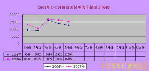 2007年1-5月份我國輕型客車銷量走勢圖