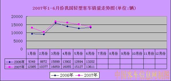 2007年1-6月份我國輕型客車銷量走勢圖