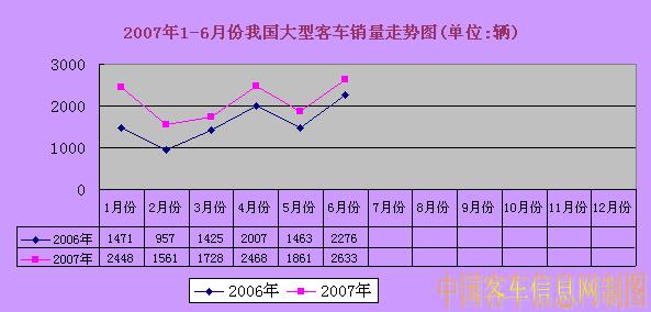2007年1-6月份我國大型客車銷量走勢圖