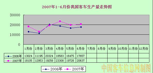 2007年1-6月份我國客車生產(chǎn)量走勢圖