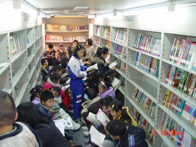 記者在蘇州圖書館了解到, “大篷車”每兩周為一個服務(wù)周期,實(shí)行定點(diǎn)定時服務(wù),該車采用蘇州金龍新型的海格客車改裝而成,車身長近11米,車內(nèi)安裝專用書架15米,可一次攜帶6000冊圖書,車上不僅裝有凈水飲水設(shè)備,還配有兩臺手提電腦、刷卡器、條形碼閱讀器等與圖書館聯(lián)網(wǎng)。