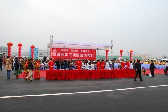 2008年3月28日,重慶恒通客車有限公司新工廠內(nèi)披紅掛彩、鼓樂(lè)喧天,“恒通客車工業(yè)園落成典禮”慶典活動(dòng)在坐落渝北區(qū)空港工業(yè)園的恒通新廠區(qū)隆重舉行。重慶市委常委、市人民政府常務(wù)副市長(zhǎng)黃奇帆,渝北區(qū)、大渡口區(qū),市區(qū)相關(guān)委辦局,建設(shè)部城市車輛專家委員會(huì),市公交集團(tuán)領(lǐng)導(dǎo);來(lái)自全國(guó)各地的城市公交、長(zhǎng)途公路客運(yùn)、旅游客運(yùn)企業(yè)、客車制造配套企業(yè)的代表,土建安裝施工單位的代表,總廠歷屆老廠長(zhǎng)、離退休老同志及員工代表、媒體共800多人參加了這次盛大的落成典禮,與恒通共同見(jiàn)證了這一歷史重要時(shí)刻。