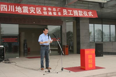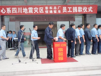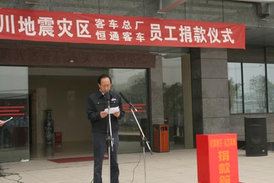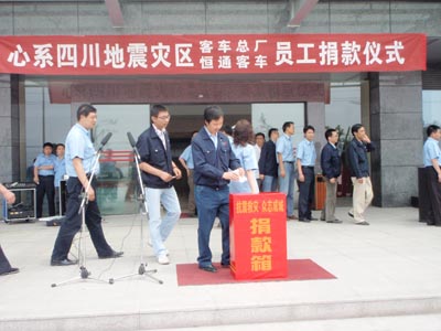 這場災(zāi)難也牽動(dòng)著重慶恒通客車有限公司上下員工的心,地震發(fā)生后,恒通客車高層領(lǐng)導(dǎo)高度關(guān)注、快速反應(yīng),在第一時(shí)間召開專題會(huì)議,成立了以鄧平總經(jīng)理為組長的“賑災(zāi)領(lǐng)導(dǎo)小組”,帶領(lǐng)小組成員積極部署救災(zāi)賑災(zāi)工作。迅速組織公司內(nèi)部和社會(huì)一切力量募捐災(zāi)區(qū)人民所需的款、食品、水、藥、被服及露宿帳篷等急需用品。組織“重建家園 恒通愛心接力在傳遞”活動(dòng),呼吁社會(huì)各界發(fā)揚(yáng)人道主義精神,積極行動(dòng)起來,奉獻(xiàn)愛心,全力以赴,與全國人民一道攜手同心,眾志成城,早日贏得抗震救災(zāi)的勝利!
