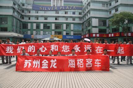 地震發(fā)生后,蘇州金龍想方設法與公司四川市場部、客服人員、中心庫、特約維修服務站以及在災區(qū)附近進行巡展的車輛駕駛員取得聯(lián)系,進行慰問,提醒他們注意安全,鎮(zhèn)靜行事。同時還號召他們在條件允許的情況下積極參與到抗震救災的活動中去,向災區(qū)人民帶去蘇州金龍人的祝福,盡一份綿薄之力。