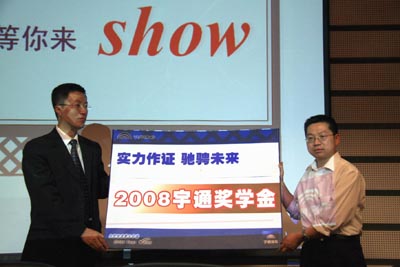 “實力作證,馳騁未來”2008宇通獎學金計劃清華大學站啟動儀式 于5月19日隆重舉行,宇通高層、人力資源部領導、中華英才網(wǎng)領導、清華大學汽車工程學院領導以及相關媒體參加了此次活動儀式。隨著宇通高層領導將印有“‘實力作證 馳騁未來’宇通獎學金”的牌子贈與清華大學汽車工程學院領導手中, 2008宇通獎學金計劃正式啟動。