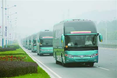 今年4月初,山東交運集團接到北京奧組委和省政府交通主管部門的緊急通知,正式被確定為北京奧運會的交通保障服務企業(yè)。山東交運集團立即著手準備組建大型奧運服務車隊,決定投資6000多萬元購置70部豪華大客車,要求尾氣排放全部達到國Ⅲ標準。之后,山東交運集團面向全國客車生產廠家招標,鄭州宇通、浙江青年和上海申龍3家客車生產企業(yè)最終勝出。昨天,70部豪華大巴按期出廠,今天全部駛入濟南市區(qū)集結。