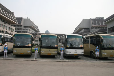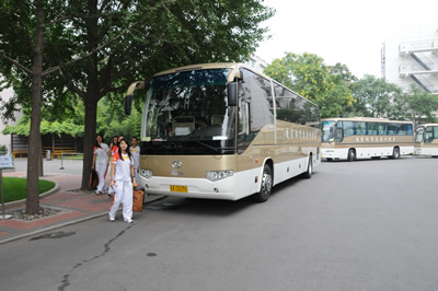 目前服務(wù)奧運(yùn)會(huì)的海格客車分成了兩個(gè)部分,其中之一就是北京銀建所使用的近百臺(tái)海格客車,它們將在鳥巢、水立方、五棵松籃球館等奧運(yùn)場(chǎng)地;另一個(gè)地方就是以北京大學(xué)為首的學(xué)校場(chǎng)地服務(wù)用車。筆者有幸跟隨海格客車的相關(guān)人員,在以上場(chǎng)地尋找海格客車的身影。蘇州金龍服務(wù)工程師想盡辦法來了解海格客車的使用情況,和司機(jī)、志愿者交談?dòng)密嚒⒊塑嚨男牡?,并與他們交換意見。面對(duì)北京三十多度的高溫,海格客車的相關(guān)人員,不僅領(lǐng)導(dǎo),還是普通維修人員,都與用戶形成了良好的溝通,掌握了這些服務(wù)用車第一手的資料,他們跟海格客車及其用戶的關(guān)系,很容易讓人想起“娘家”人來看“外嫁的女兒”。