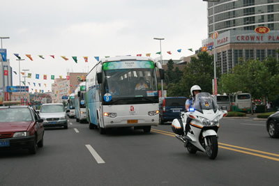 奧運(yùn)會(huì)期間的北京街頭,你現(xiàn)在可以看到至少10個(gè)品牌的中國(guó)客車(chē),他們穿梭于各條公交線路、體育賽場(chǎng)、旅游景點(diǎn)以及賓館酒店之間。