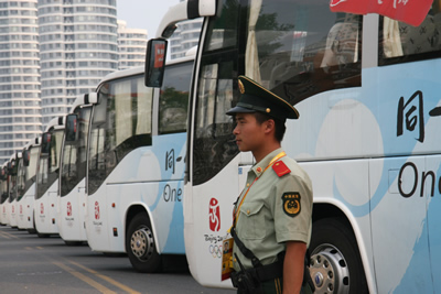 武警守衛(wèi)海格客車(chē)服務(wù)奧運(yùn)會(huì)車(chē)隊(duì)