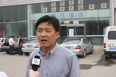 海格客車(chē)服務(wù)奧運(yùn)會(huì)北京指揮部保養(yǎng)組負(fù)責(zé)人馮明接受記者采訪