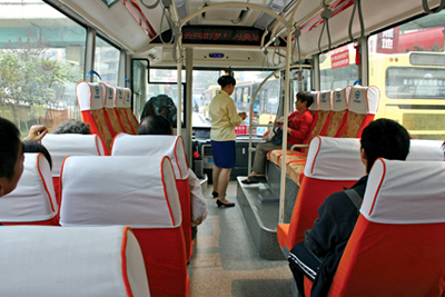 昨日上午10點,記者從回興工業(yè)園區(qū)乘坐801路前往加州。醒目的車身、寬敞的乘車環(huán)境,的確讓人耳目一新,乘務(wù)員的服務(wù)態(tài)度也稱得上“星級服務(wù)”。
