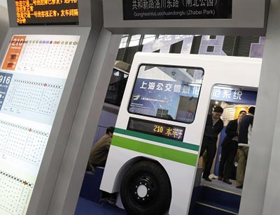 201路概念車(chē)和配套的公交站亭昨日開(kāi)進(jìn)工博會(huì)展館