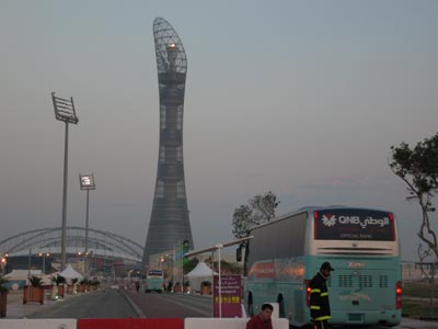 海格客車車隊(duì)正駛向多哈亞運(yùn)會(huì)開(kāi)幕式