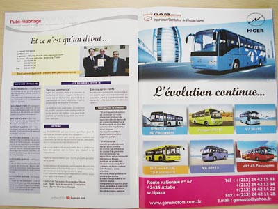 日前,第二屆阿爾及爾國(guó)際商用車展在阿爾及爾國(guó)家展覽館SAFEX舉行,此次展覽是獨(dú)立于阿爾及利亞轎車展而專為商用車舉辦的,共有34個(gè)汽車經(jīng)銷商參加。海格客車以布展面積最大、展出的客車展品最多成為本屆展會(huì)組團(tuán)規(guī)模最大的巴士展商。據(jù)了解,海格展臺(tái)超過(guò)800㎡,展出KLQ6758、 KLQ6796/Q、KLQ6896Q,KLQ6119Q、KLQ6129Q、KLQ6820G、KLQ6100G共8大系列車型。本屆展會(huì)吸引了眾多歐洲和日韓品牌奔馳、雷諾、現(xiàn)代、起亞、豐田、尼桑等汽車巨頭參加,中國(guó)也亮出了東風(fēng)、解放、福田、江淮、海格、金龍、宇通等為主導(dǎo)的民族自主品牌,與世界知名品牌同場(chǎng)競(jìng)技。